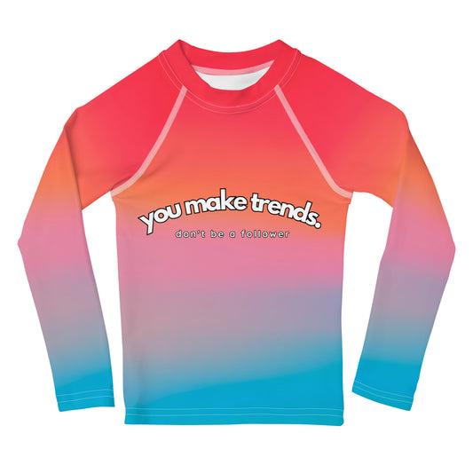 YMT classics kids long sleeve rash guard swim top UPF50 beach impression.