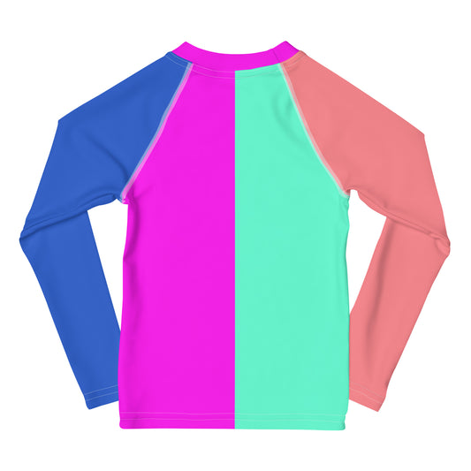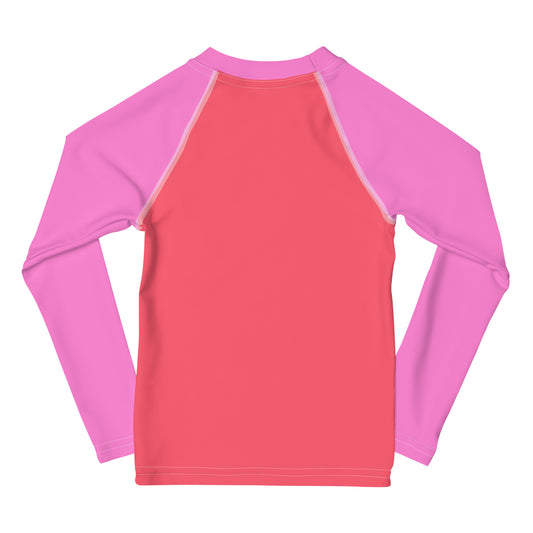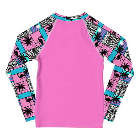 kids long sleeve rash guard swim top UPF50 miami by night colorblock pink.