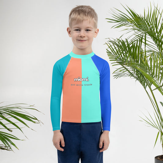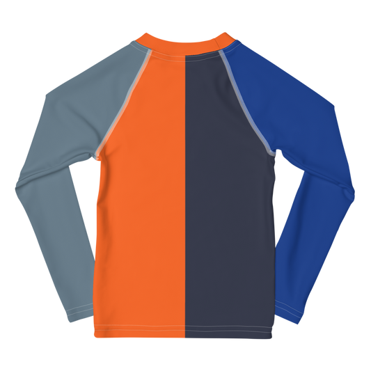 kids long sleeve rash guard swim top UPF50 miami by night colorblock blue.