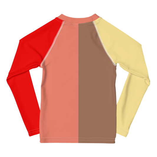 kids long sleeve rash guard swim top UPF50 new york by night colorblock red.