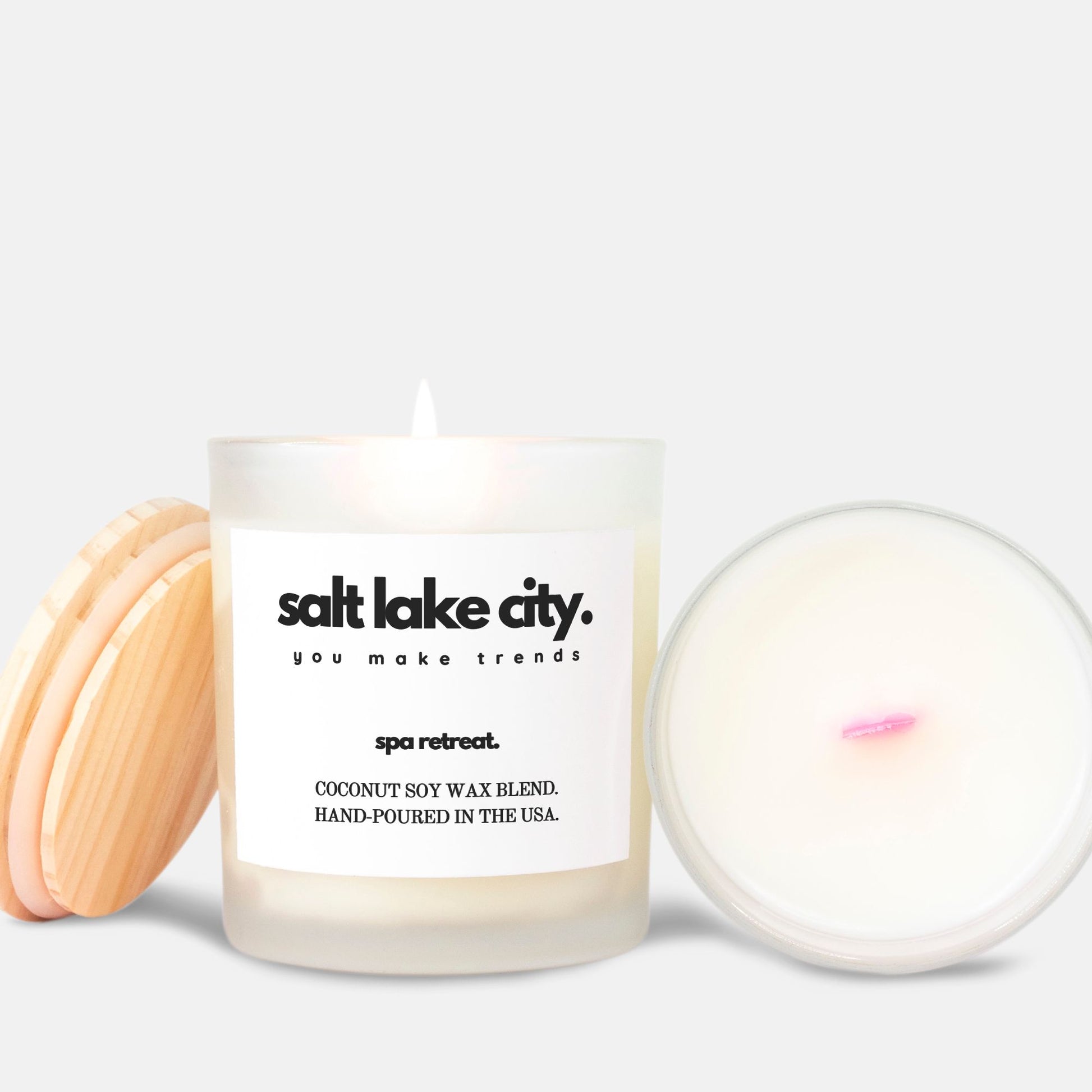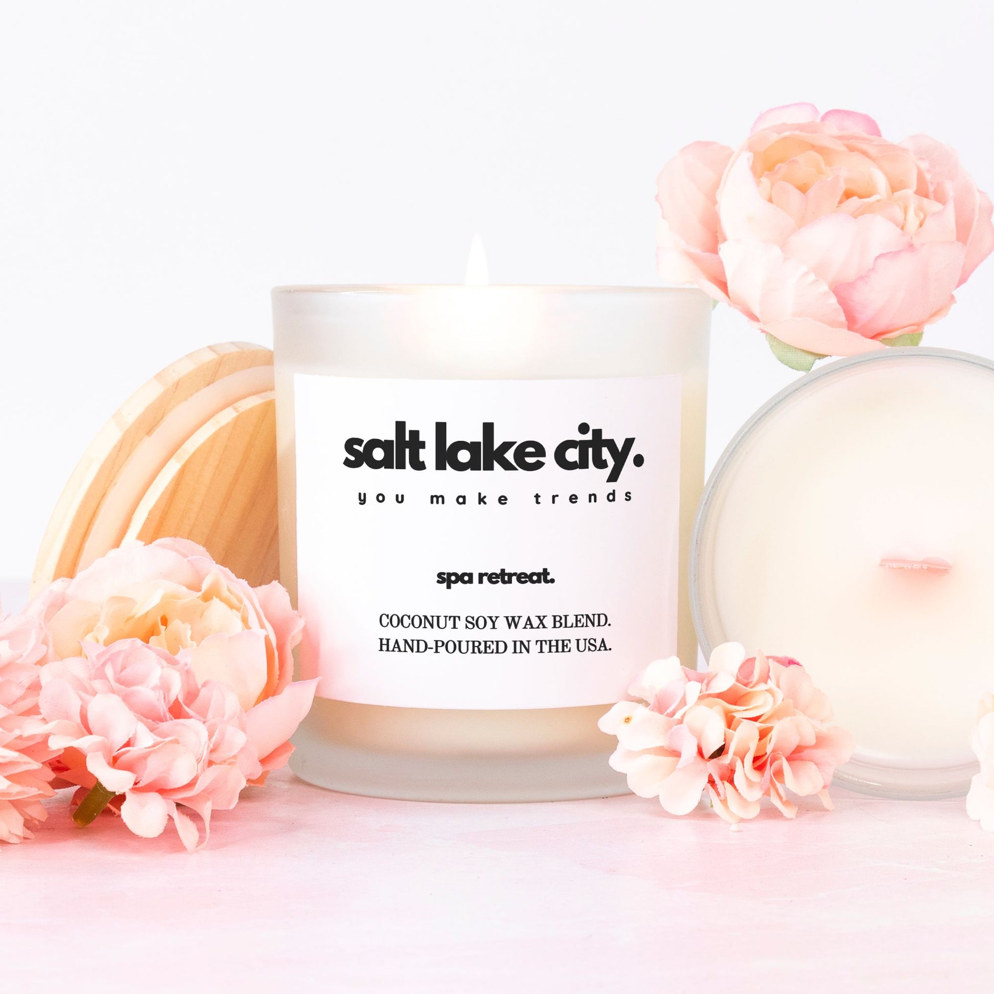 salt lake city spa retreat candle frosted glass - special edition pink wick 11oz.