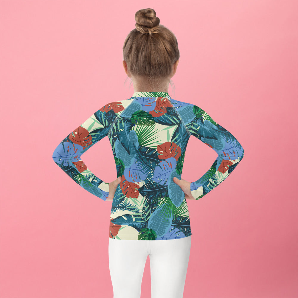 Protect the little ones from the elements with this colorful kids rash guard. Its sun-protective fabric and long body and sleeves make it perfect for running around on the beach, or just being active indoors.