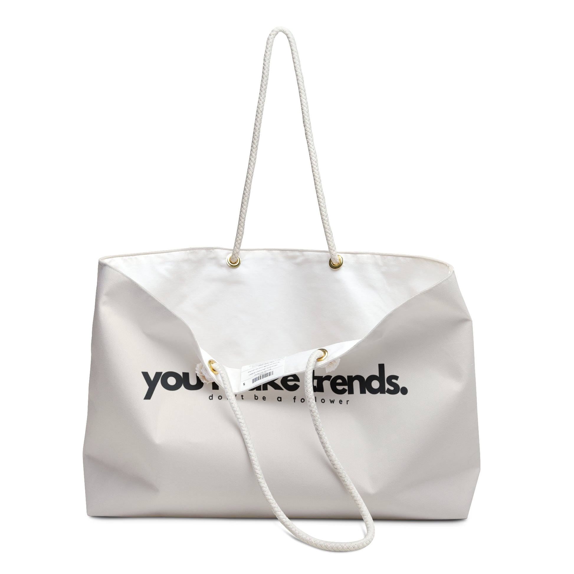 Our oversized Weekender Tote is perfect for your weekend at the beach or in town. The wide-mouthed, durable bag holds a generous amount of personal items and is easily held by its thick rope handles.